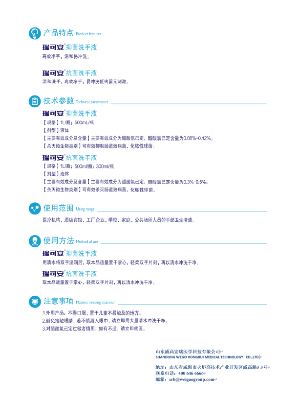 規(guī)格型號(hào):瑞可安抑菌洗手液 500ml 1000ml