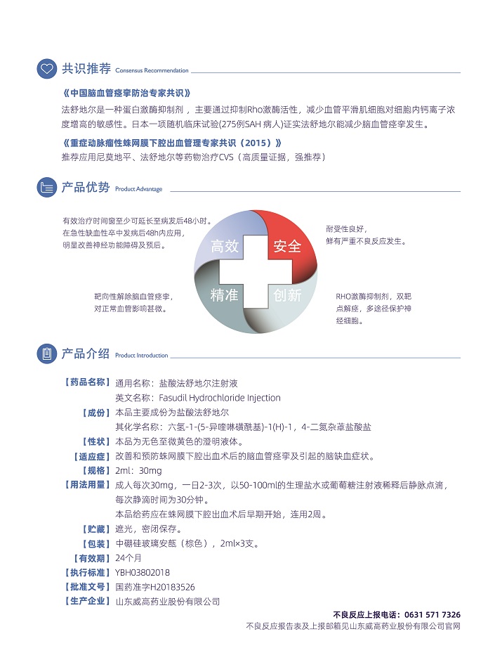【適 應(yīng) 癥】改善和預(yù)防蛛網(wǎng)膜下腔出血術(shù)后的腦血管痙攣及引起的腦缺血癥狀。