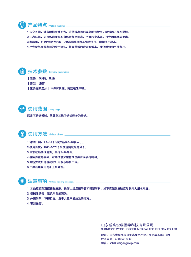 1. 安全可靠,獨有的抗腐蝕配方,在器械表面形成新的保護(hù)層,除銹而不損傷器械。