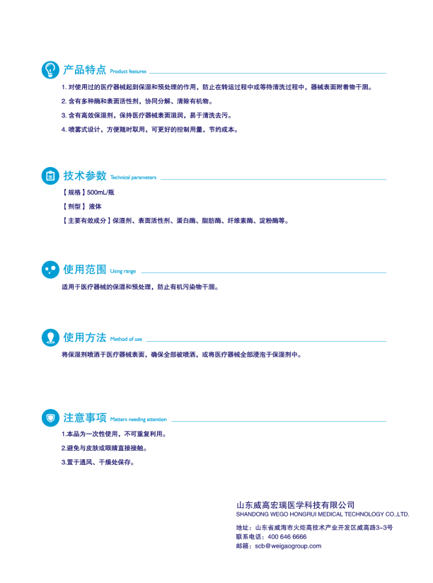 3.含有高效保濕劑,保持醫(yī)療器械表而濕潤(rùn),易于清洗去污。